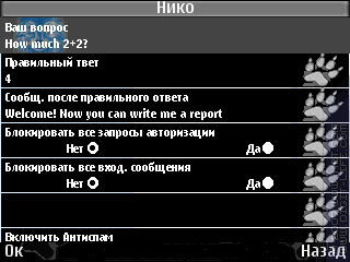 Сперва о статусах. В программе присутствует весь набор ICQ-статусов, доступный в альтернативных клиентах. То есть различные «На работе», «Кушаю» и тому подобное «VmICQ» отображает без проблем. Приватные статусы также идентичны своим аналогам на компьютерных IM-клиентах.
